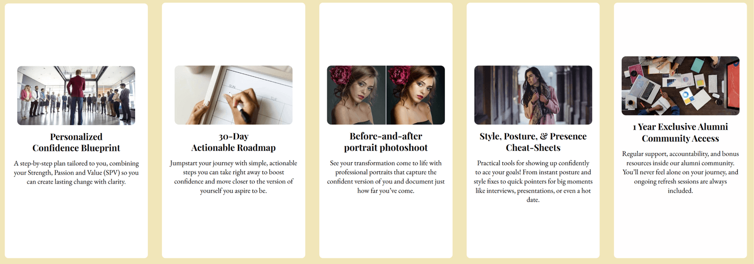 Our flagship program takes you from persistent self-doubt to lasting, unshakable confidence through a proven, whole-person development framework. Experience the shift in just one session.